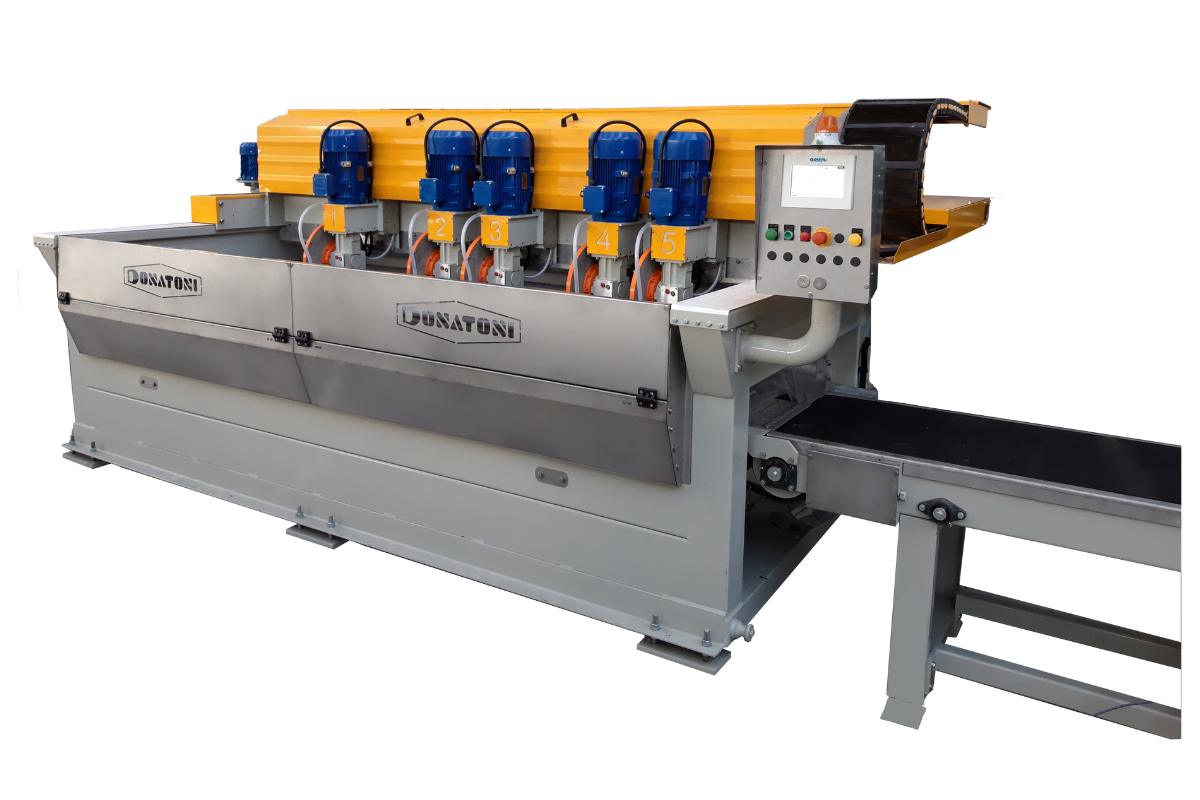 Les principales caractéristiques de la machine multidisques de la série DONATONI E1S sont la haute précision et la haute productivité dans la coupe transversale, en un ou plusieurs passes, de bandes de différents matériaux, tels que le marbre, le granit, la pierre naturelle, la céramique et le quartzite. Grâce à la technologie utilisée, le processus de coupe se déroule dans un cycle automatique continu avec un positionnement contrôlé des unités de coupe, qui sont indépendantes les unes des autres.