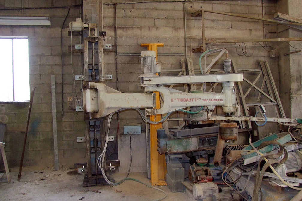 Polissoir à genouillère THIBAUT type GB10 avec tête 4 meules granit, bon état général, grand montée-baisse motorisé, disponible et visible dans nos ateliers, prix HT en l'état. Révisée prévoir délai.